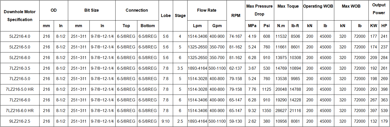 • 216mm (8-1/2 Inch) Downhole Motor